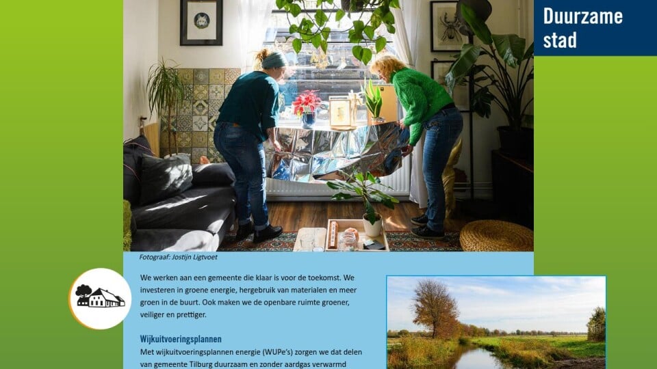 Met wijkuitvoeringsplannen energie (WUPe’s) zorgen we dat delen van gemeente Tilburg duurzaam en zonder aardgas verwarmd worden. Samen met inwoners en partners werken we in de wijk aan het isoleren van woningen. We zijn al gestart in Udenhout en Groenewoud. In 2026 willen we in vier nieuwe wijken beginnen met een WUPe.